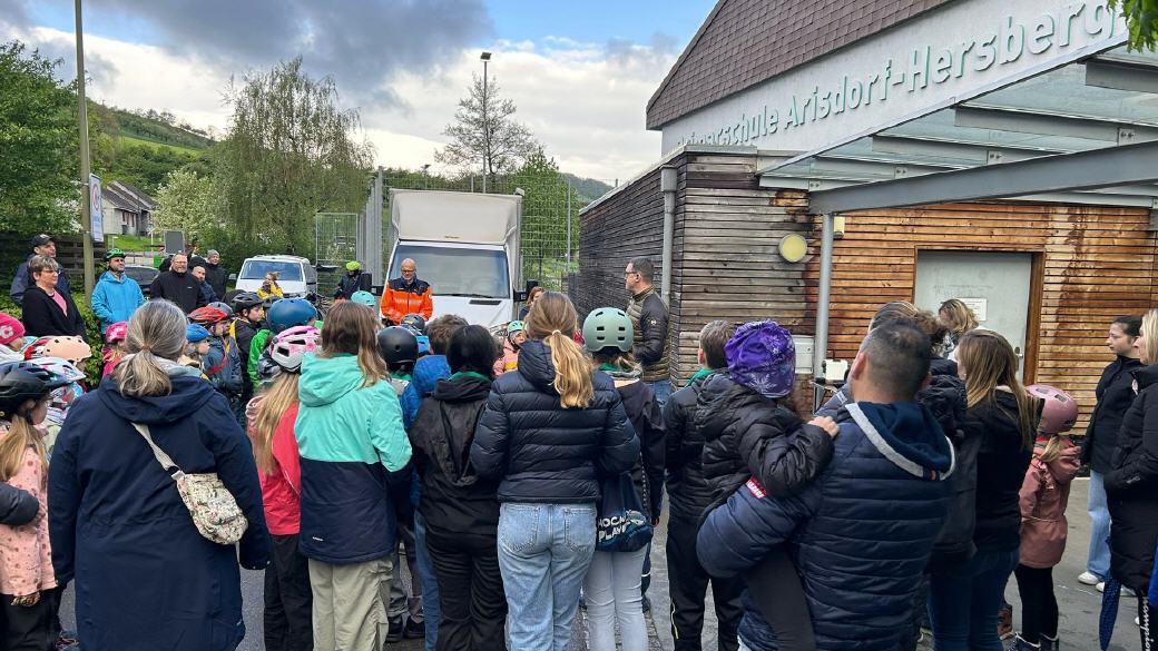 Am Samstag, 05. April 2025, vormittags, führten wir vom Verein «Leben in Arisdorf» (LiA) bereits zum 3. Mal einen Velo- und Trottinett-Sicherheitstag für die Kinder der beiden Schulkreisgemeinden Arisdorf-Hersberg durch. Die Sonne schien mit den Gesichtern der 44 teilnehmenden Kindern um die Wette. Ein abwechslungsreiches Programm erwartete die Kinder an diesem Samstagmorgen. So hatten wir zum ersten Mal einen Lastwagen der Fa. Surer, Lausen, auf Platz. Mit diesem Fahrzeug verdeutlichten wir den Kindern die Wichtigkeit und Gefährlichkeit des «Toten Winkels». Auf der Velofahrt mit zwei Polizisten der Verkehrsinstruktion der Polizei Basel-Landschaft durchs Dorf wurden u.a. Themen wie das korrekte und sichere Abbiegen nach links und die Vortrittsregelungen geübt. Zudem konnten die Kinder auf einem Parcour ihr Geschick mit dem Trottinett festigen. Präsidial gestaltet sich die Reparatur der Kinderräder, wurden sie doch durch unseren Präsidenten, Urs Schuler, und dem Gemeindepräsidenten von Arisdorf, Markus Miescher, kontrolliert und kleinere Mängel fachmännisch behoben. Unser Dank geht an die F. Surer Transoprt AG, Lausen, allen Helfenden und der Gemeinde Arisdorf.