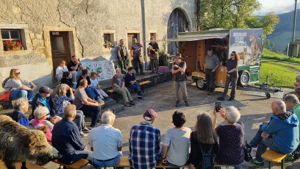 Das Jagdmobil mit seinen Stopfpräparaten erklärte uns Werner Schaub. Er zeigte auch die